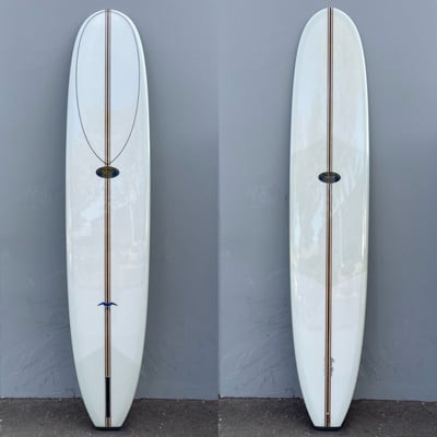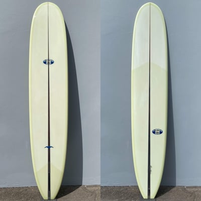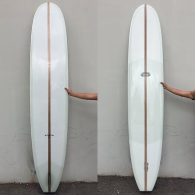 Donald came up with this design in the 60’s when surfing was all about getting on the tip. An exceptional log, but also extremely versatile in any size waves. The Rolls Royce of Donald’s classic longboards. Single glass on pivot fin, 10 oz. Volan cloth with knee patch, and balsa/cedar/foam t-band stringer with high density foam tail block. Classic Noserider Light Weight (LW) is also vailable.