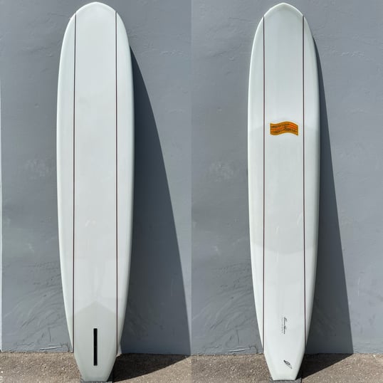 One of 60's Donald Takayama's original models. Double Stringer foam t-band for a unique flex pattern while walking the nose or hotdogging off the tail. Step Deck allows for a lighter weight nose (thinner nose) to help lighten up for swing weight off the tail and while increasing nose rocker for steeper sections. Pulled in square tail with a RLB (rake style) fin for ultimate retro performance off the tail. Probably one of the easiest boards to noseride in the retro lineup.