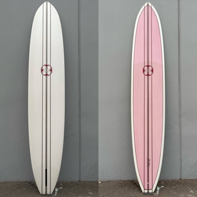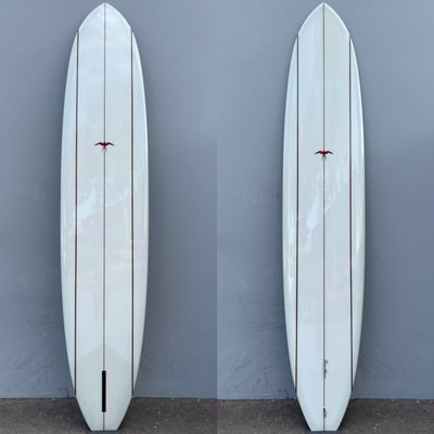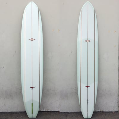 Straight from the 1960's, this volan cloth, single fin retro is the genuine article. Whereas Donald's other retros have been adapted to more progressive surfing, the nostalgia of the original long board era is kept alive in the 60's Donald Takayama model. Made especially for the old-style of surfing that includes drop-knee power turns, speed trimming and nose riding, riding this 3 stringer beauty is like stepping back into the era when "hot-dogging" had just been birthed.