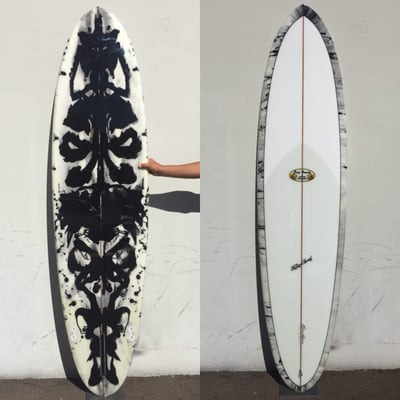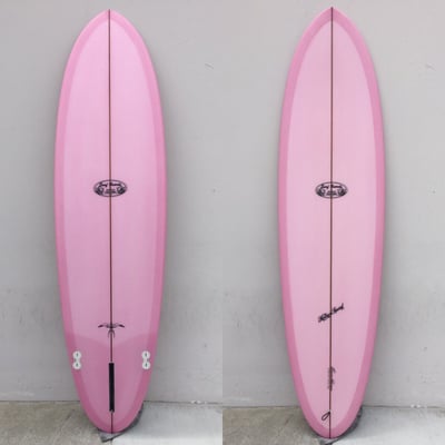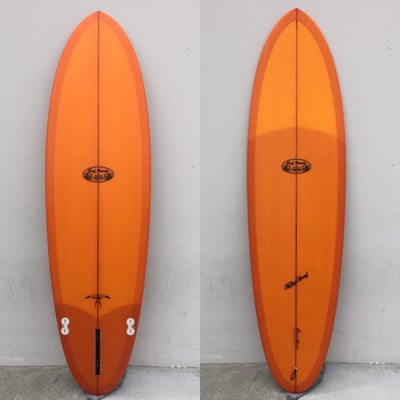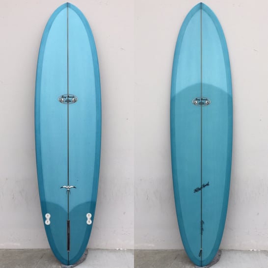"I have a 7’2” egg design that Donald Takayama calls the Howard Special Mini.   It’s a low rocker egg with a mid-volumed template. Not speedy, not bulbous like a mini-tanker. It has pinched rails and vee. Can be two-plus-one widowmaker, single or tri, making it super versatile. The perfect board."  Text by Devon Howard and Glenn Sakamoto quoted via Liquid Salt Mag: